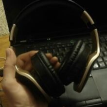 Our ear-wrapped design allows for an ergonomic wear during use. Sound remains reserved to your ears with superb sound quality and reduced leakage. The ear muffs are made of leather for supportive wear while a telescopic head beam on the headphones provides easy adjustability. A sleek, all-over black color provides a modern and clean look. Our headphones measure 6.7 x 7.6 in (L x H) and widths of 1.2 in from the top of the headband and 3 in at the bottom where the ear muffs are.